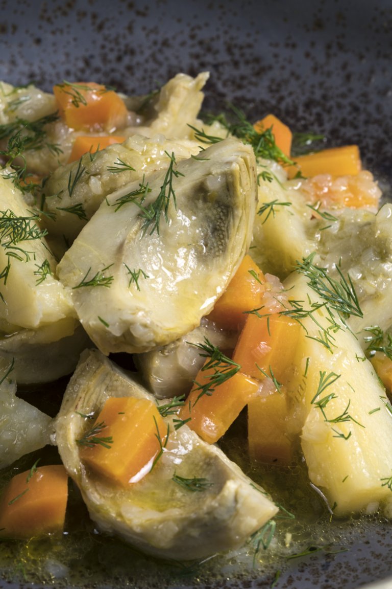 Αγκινάρες με κρεμμυδάκια και μάραθο