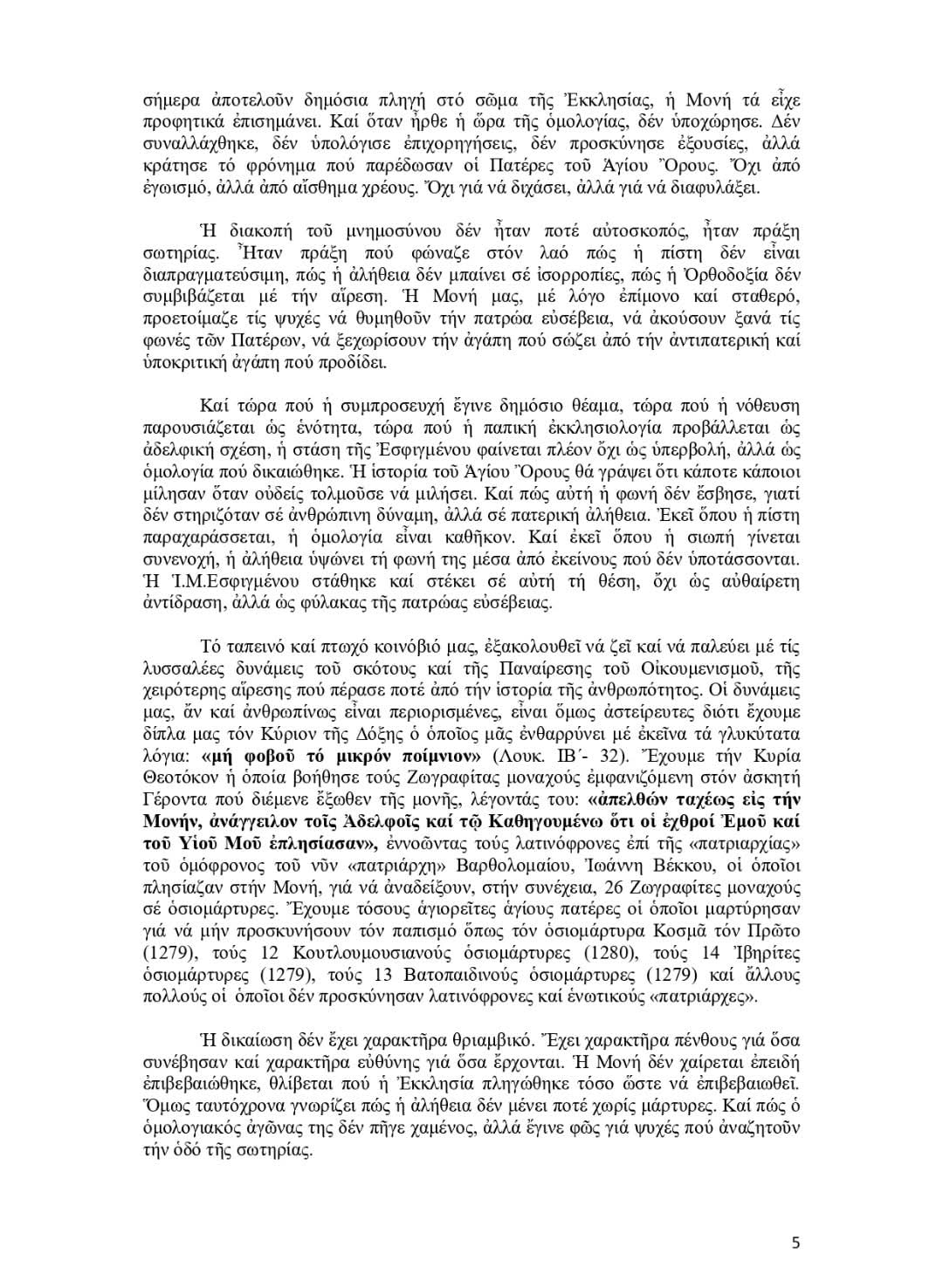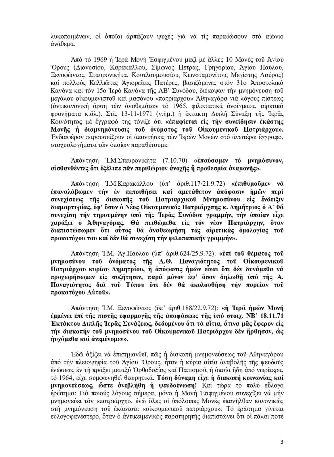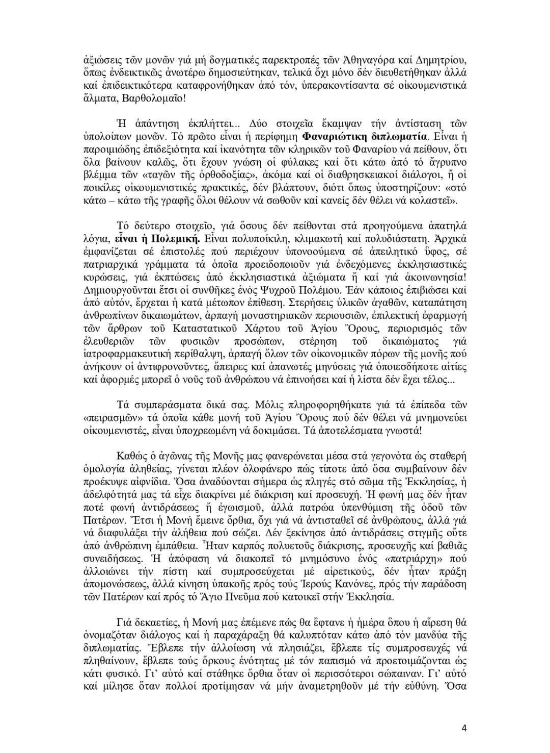 ΑΝΟΙΧΤΗ ΕΠΙΣΤΟΛΗ ΙΕΡΆΣ ΜΟΝΉΣ ΕΣΦΙΓΜΈΝΟΥ ΠΕΡΙ ΚΟΙΝΏΝ ΔΗΛΏΣΕΩΝ ΒΑΡΘΟΛΟΜΑΊΟΥ- ΠΆΠΑ.