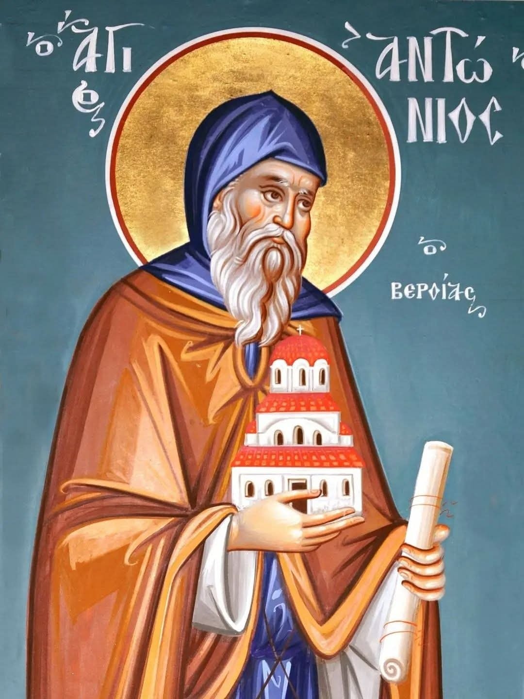 Ἤσκησας θεόφρον ὑπερφυῶς, καὶ ἐθαυμαστώθης, τῇ τοῦ Πνεύματος δωρεᾷ. Ὅθεν τῆς Βεροίας, ἡ πόλις σὲ γεραίρει, ὡς θεῖον πολιοῦχον, Πάτερ Ἀντώνιε.