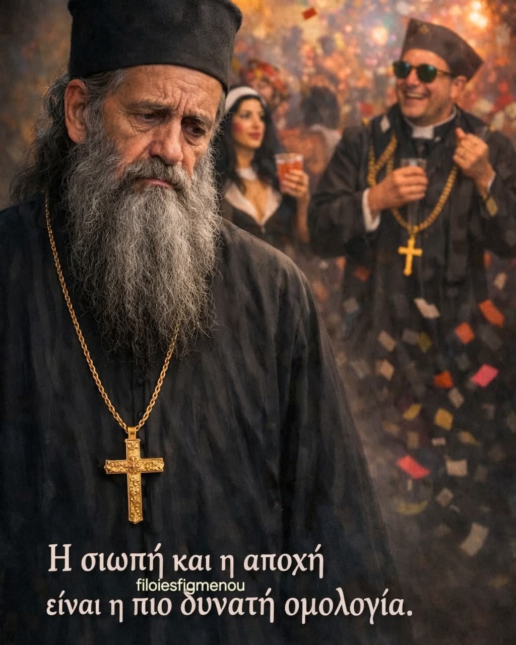 Όταν λοιπόν η διασκέδαση των πολλών γίνεται θλίψη της συνείδησης, τότε η σιωπή γίνεται προσευχή και η αποχή γίνεται ομολογία. Διότι η μεγαλύτερη μαρτυρία δεν είναι τα λόγια, αλλά η στάση της καρδιάς. Ο άνθρωπος που αρνείται να συμμετάσχει σε ό,τι πληγώνει την πίστη του, γίνεται μάρτυρας της αλήθειας, ακόμη και χωρίς να μιλήσει.