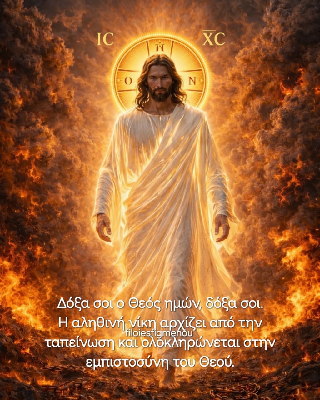 Κύριε Ιησού Χριστέ, Φως του κόσμου, μη μας αφήσεις να βαδίζουμε στο σκοτάδι. Στερέωσε την καρδιά μας στη βεβαιότητα ότι Εσύ είσαι η Νίκη. Υποτασσόμαστε στο θέλημά Σου. Αντιστεκόμαστε στον πονηρό εν τω Ονόματί Σου. Στήριξέ μας έως τέλους, ώστε να μείνουμε πιστοί μέσα στον αγώνα.