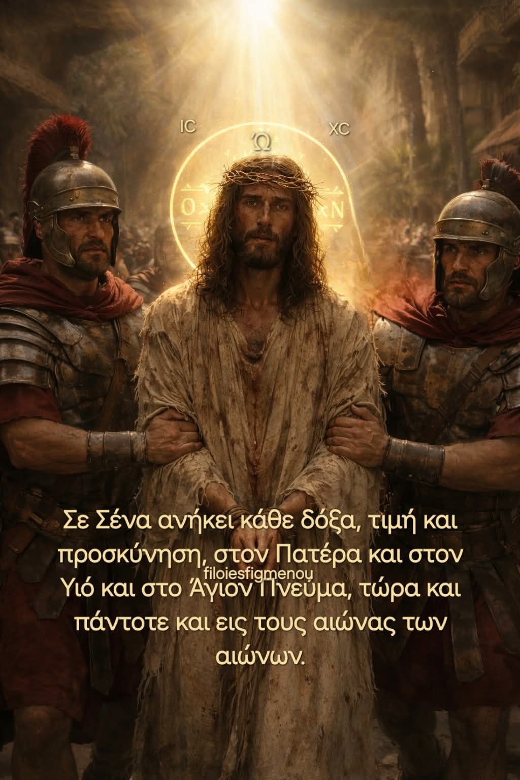 Διότι Εσύ, αν και αθώος, εστάθης ως αρνίον άμωμον ενώπιον των ανθρώπων. Η καρδιά Σου δεν γέμισε οργή αλλά έλεος. Τα βήματά Σου δεν οδηγήθηκαν από εκδίκηση αλλά από την άπειρη φιλανθρωπία που σώζει τον κόσμο. Έτσι φανέρωσες ότι η αληθινή δύναμη δεν βρίσκεται στην εξουσία αλλά στην ταπείνωση, και ότι η σωτηρία του ανθρώπου γεννιέται μέσα από την θυσία.