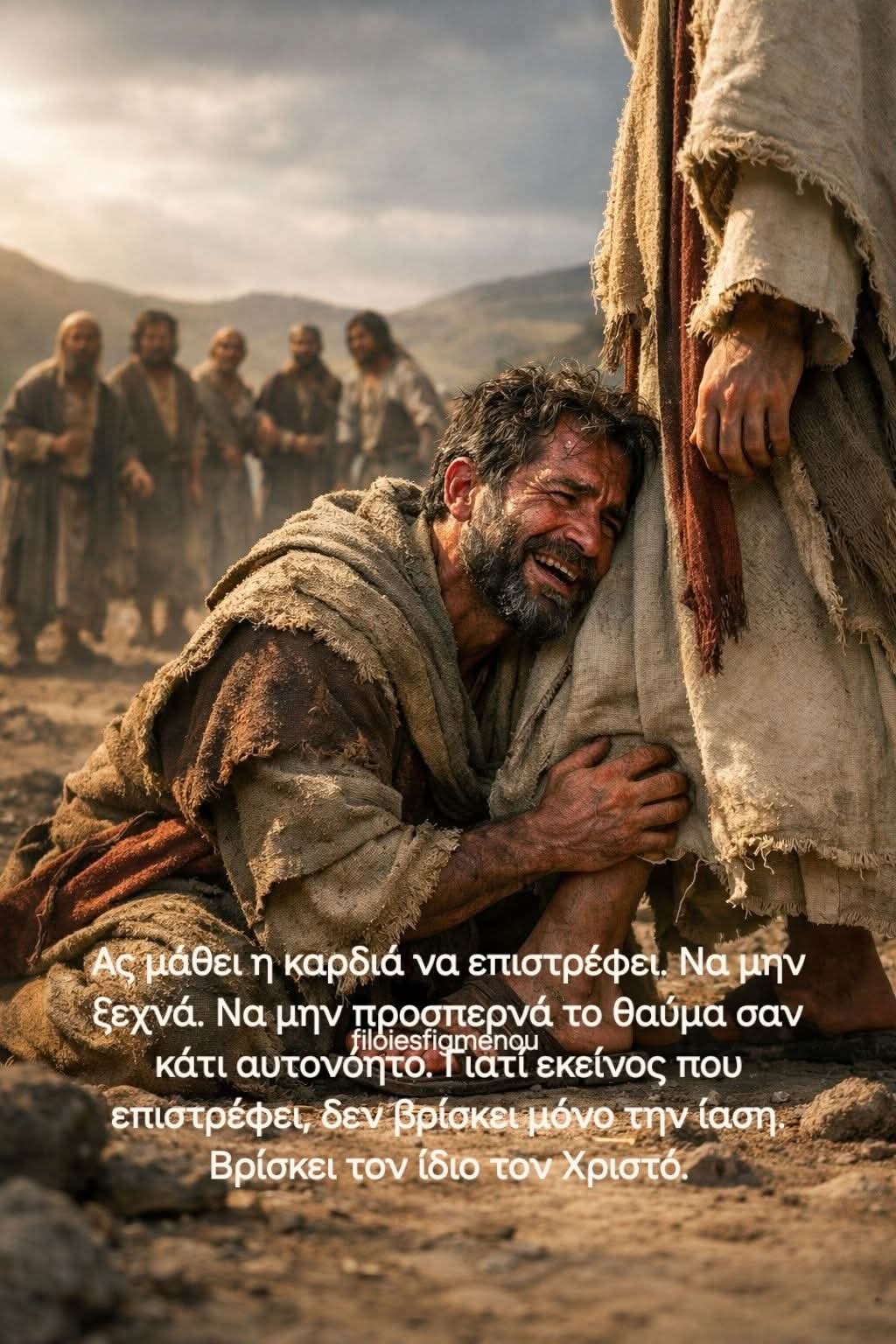 Πλημμυρισμένος από ευγνωμοσύνη, έπεσε στα πόδια του Χριστού και Τον ευχαρίστησε με όλη του την καρδιά. Εκεί, στο χώμα της ταπεινώσεως, βρήκε το ύψος της χάριτος. Διότι «ὁ ταπεινῶν ἑαυτόν ὑψωθήσεται» (Λουκάς 14:11).