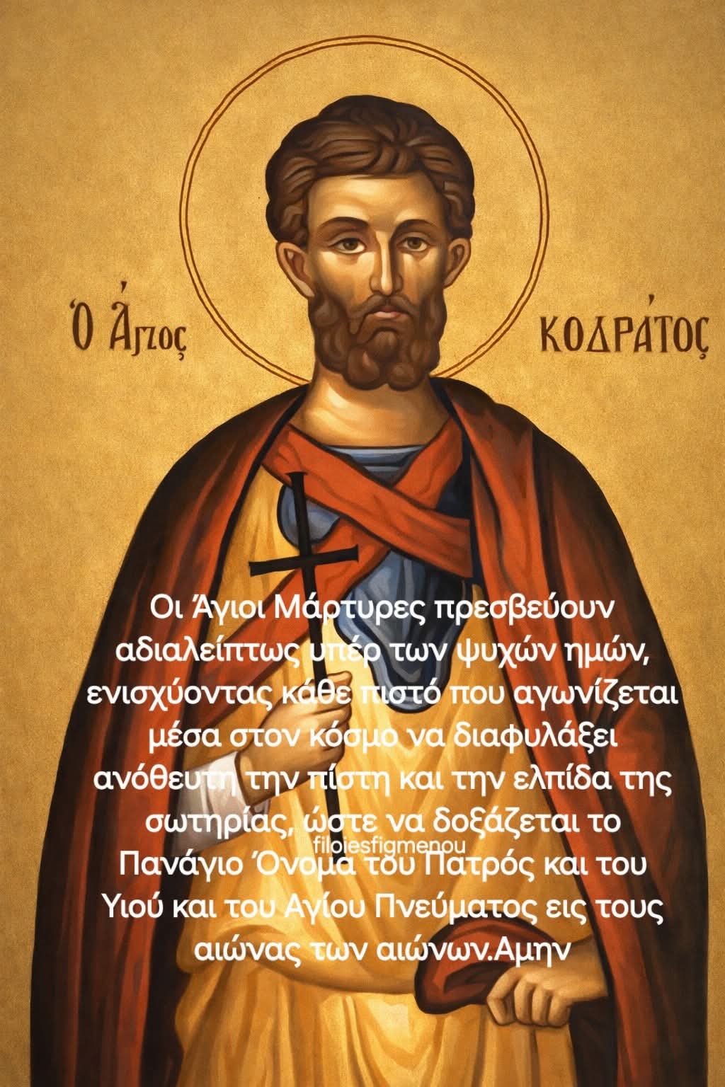 Δευτέρα 10 Μαρτίου 2026 με το πάτριο ορθόδοξο εορτολόγιο επιτελούμε την μνήμη Άγιοι Κοδράτος, Ανεκτός, Παύλος, Διονύσιος, Κυπριανός και Κρήσκης